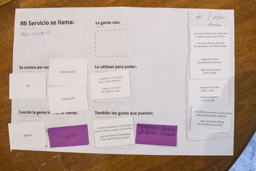 As our participants sorted the cards, we would have them “think out loud” so that we could understand their thought process. With these activities, one of the most important things is the prioritization, so when a participant chose several cards for a category, we would always force her to choose the most important, second most, etc… and explain her choices.